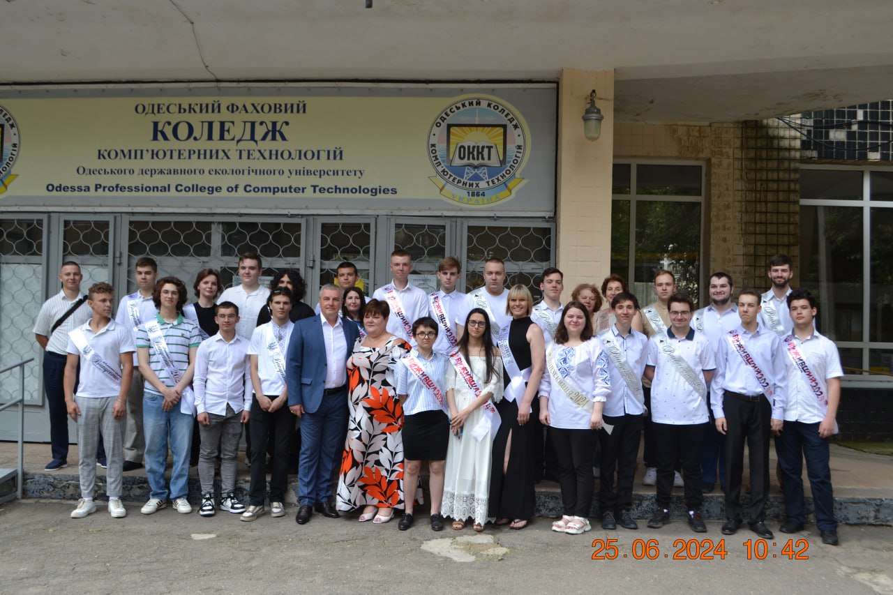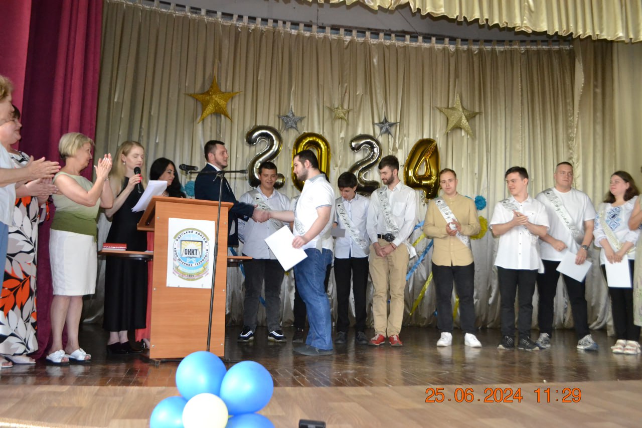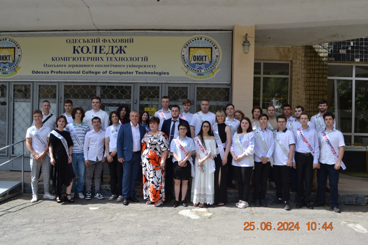 Урочистий випуск-2024 в Одеському фаховому коледжі комп’ютерних технологій відбувся 25 червня. У святковій актовій залі 169 випускників 4-х відділень “Технології”, “Дизайн”, “Програмна інженерія”, “Прикладна інженерія” отримали дипломи.