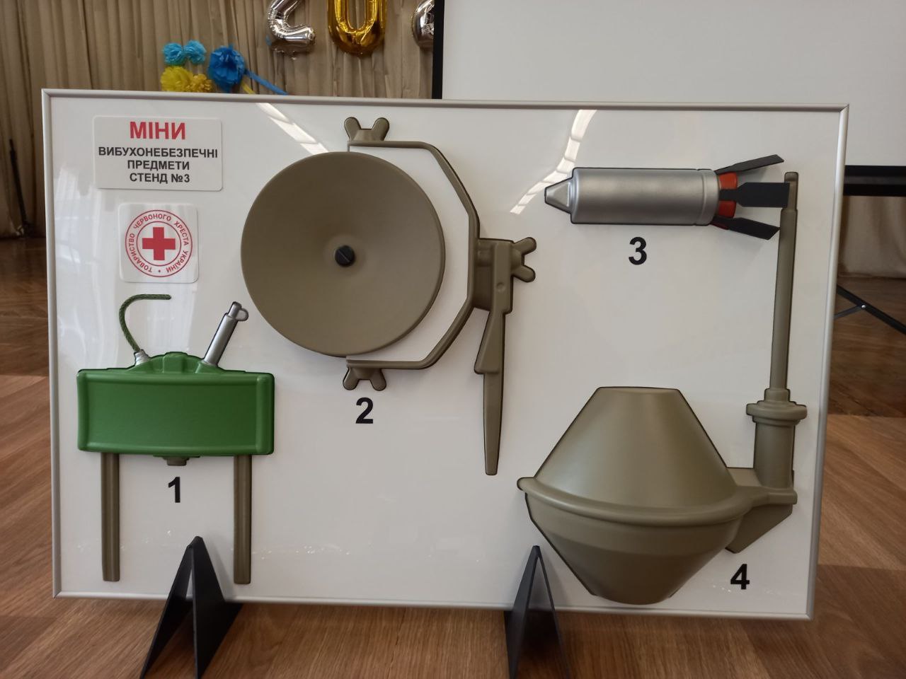 Представники Товариства Червоного Хреста України інформували про ризики небезпеки вибухонебезпечних предметів, ознайомили студентів із видами мін.Звернули увагу на місця, де вони можуть знаходитися: у зруйнованих будинках, біля блокпостів, позицій військових, у лісах, на берегах річок, біля покинутої військової техніки та обладнання. Наголосили, що кожному треба бути дуже уважним, щоб захистити себе та родину від вибухонебезпечних предметів. А у разі виявлення підозрілих предметів телефонувати 101.