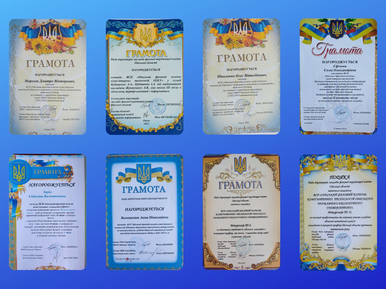 OKKT2023-07-03T16:52:38+03:0026 червня у ВСП «Одеський фаховий коледж комп’ютерних технологій Одеського державного екологічного університету» відбулися збори трудового колективу. Директор коледжу Ковальчук В.В. прозвітував про виконану роботу у навчальному закладі протягом 2022-2023 навчального року. Повідомив про активну працю 3-х відділень: «Технології. Дизайн» (завідувачка Неретіна І.В.),«Прикладна інженерія» (завідувачка Д’яченко М.К.),«Комп’ютерні науки. Економіка (інтернет-маркетинг)» (завідувачка Волошенюк А. М.) та перспективу відкриття 4-го відділення. Більшість викладачів успішно пройшли курси та отримали в цьому році сертифікати «Цифрові інструменти GOOGLE для освіти» базового, середнього та високого [...]